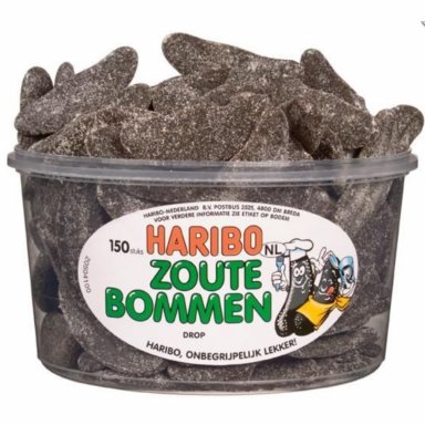 Haribo Zoute Bommen zijn krachtige dropjes met een intense zoute smaak en een stevige textuur. Deze klassieke salmiakdrop is bijzonder geliefd bij echte liefhebbers van sterke, zoute drop.